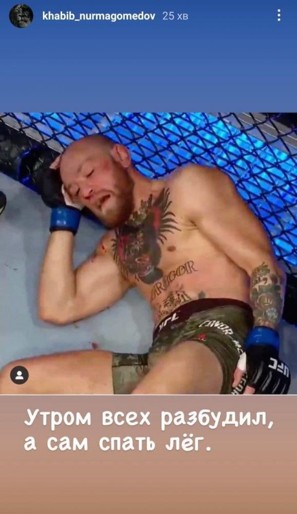 Хабиб Нурмагомедов продолжает издевательства над ирландцем Конором МакГрегором (22-5) после его поражения от Дастина Порье (27-6). Очередной подкол россияни разместил на своей официальной странице в Instagram.