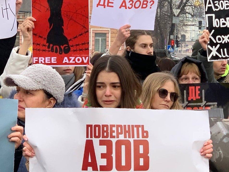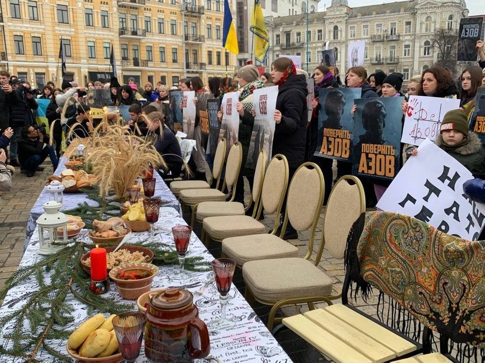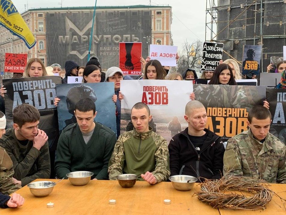 На Софійській площі у Києві провели перформанс, на підтримку полонених бійців полку "Азов"