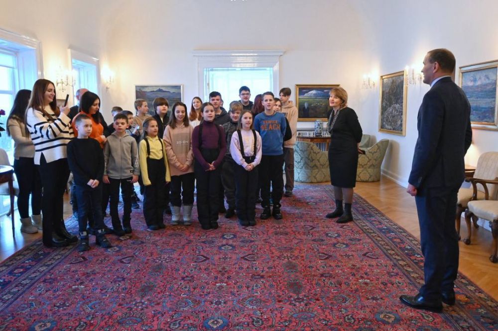 На знак вдячності за підтримку ісландського народу діти принесли президенту виготовлені власноруч сувеніри.