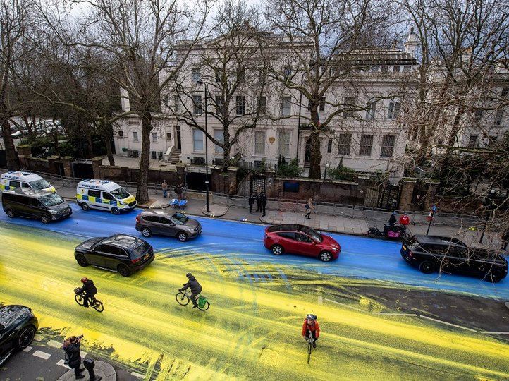 Пофарбували у жовто-блакитний вулицю біля посольства РФ у Лондоні